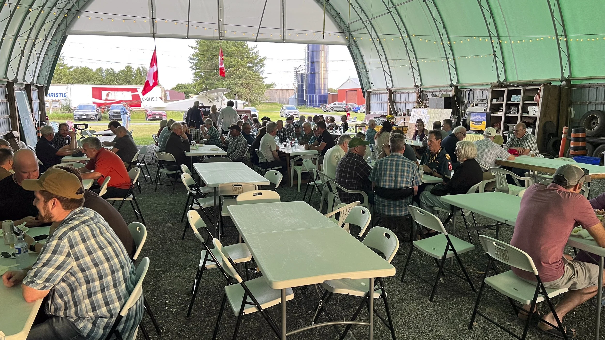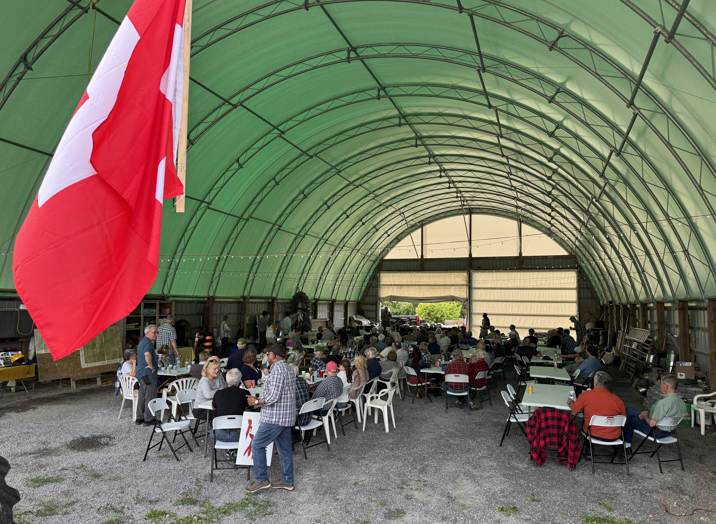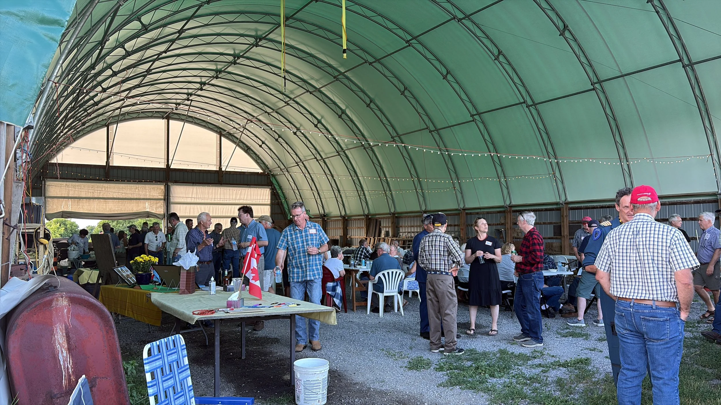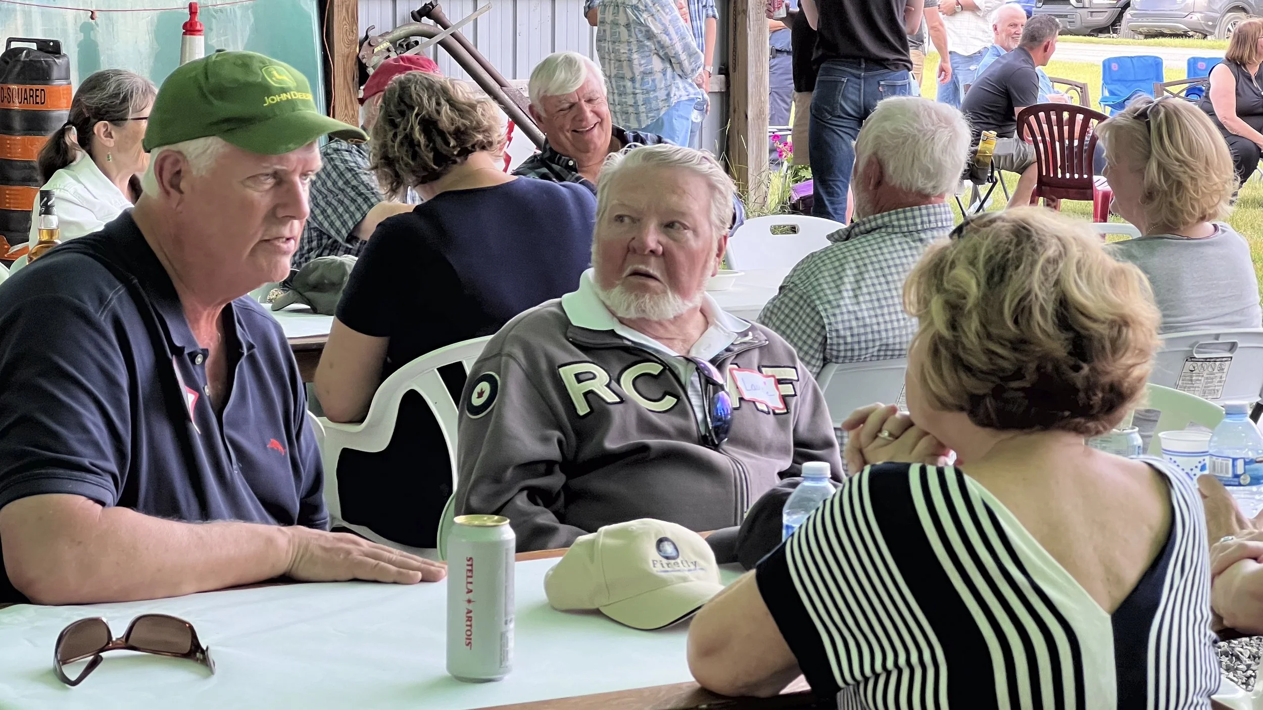 Former CF-104 Starfighter pilots join Dave O'Malley for a rousing Hi Ziggy Zumba toast to their friend and squadron mate “Rick” Photo: Peter Handley