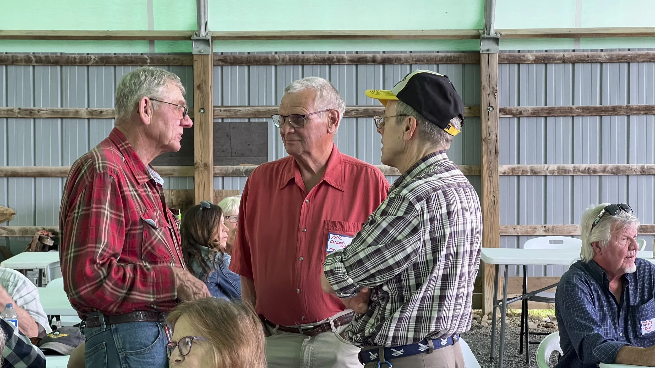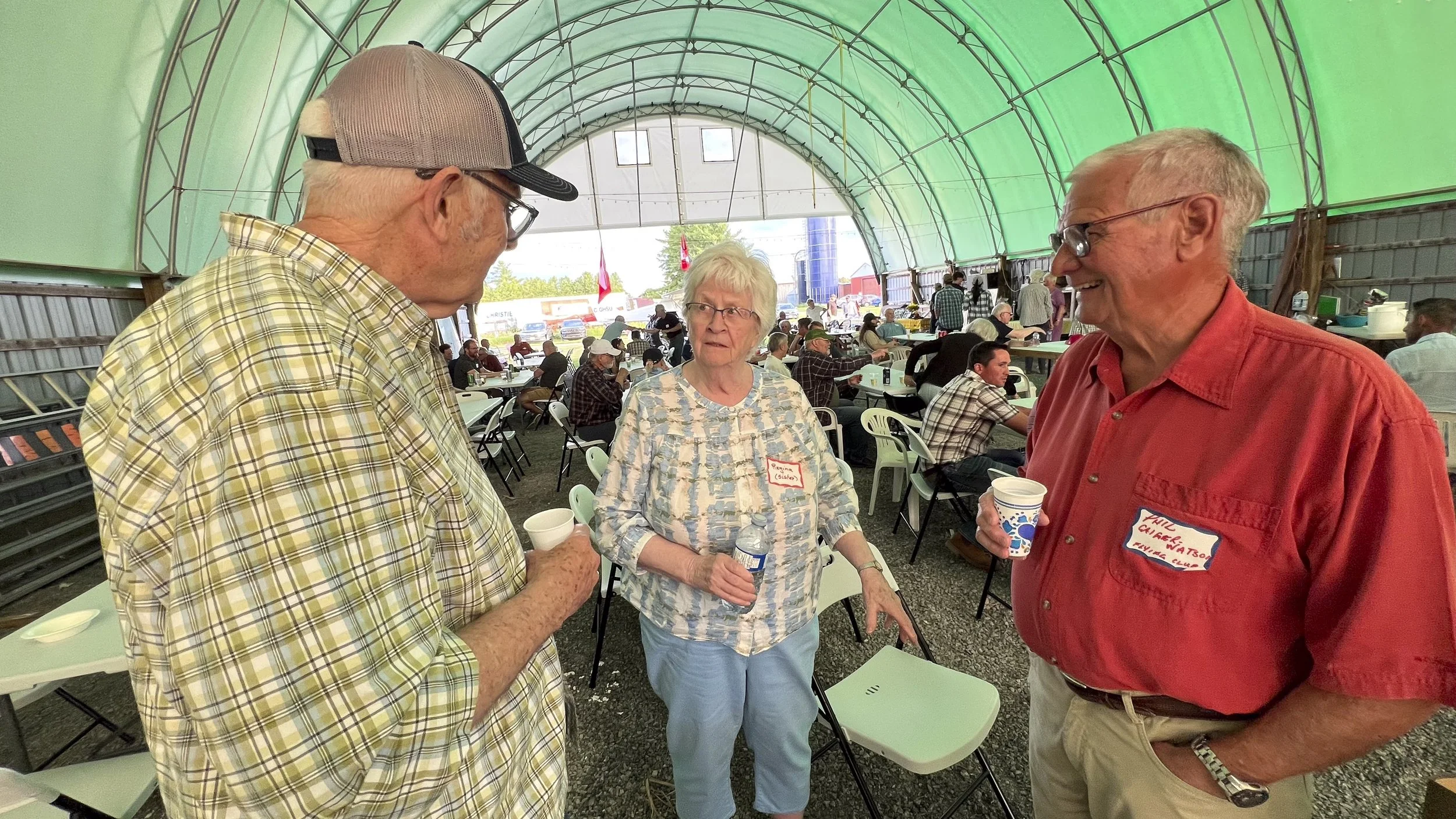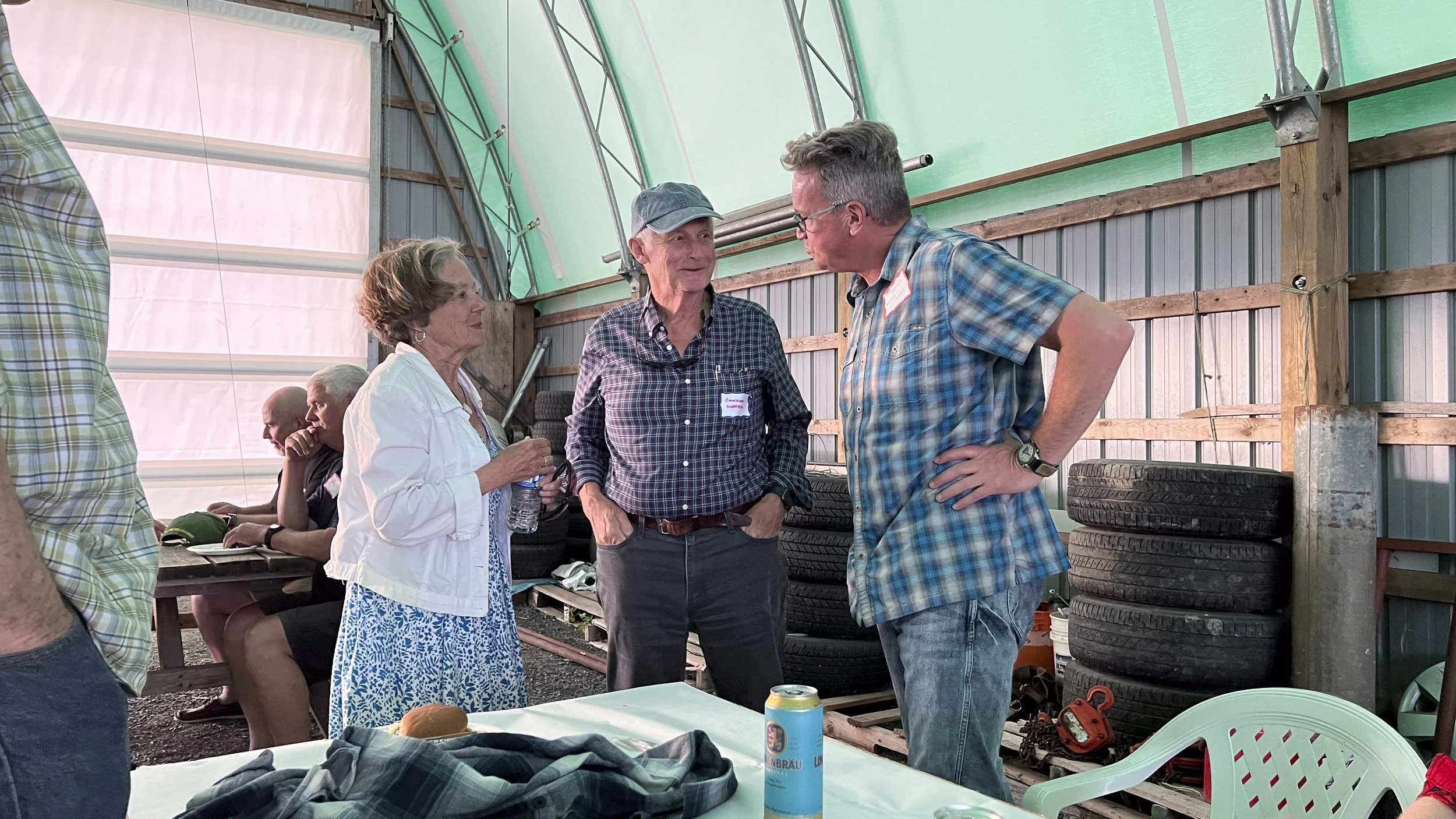 Todd Lemieux (Right) chats with Dr. Conrad Watters (flying colleague of Bollinger's) and his wife Nancy. Photo: Peter Handley