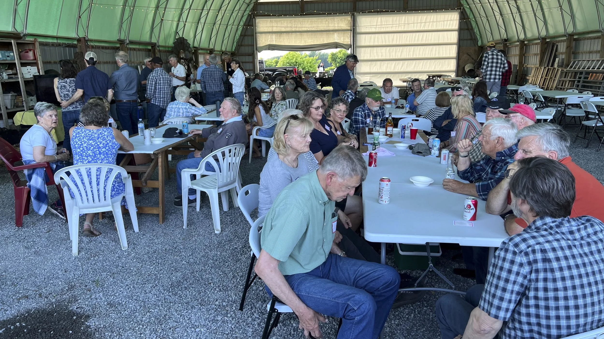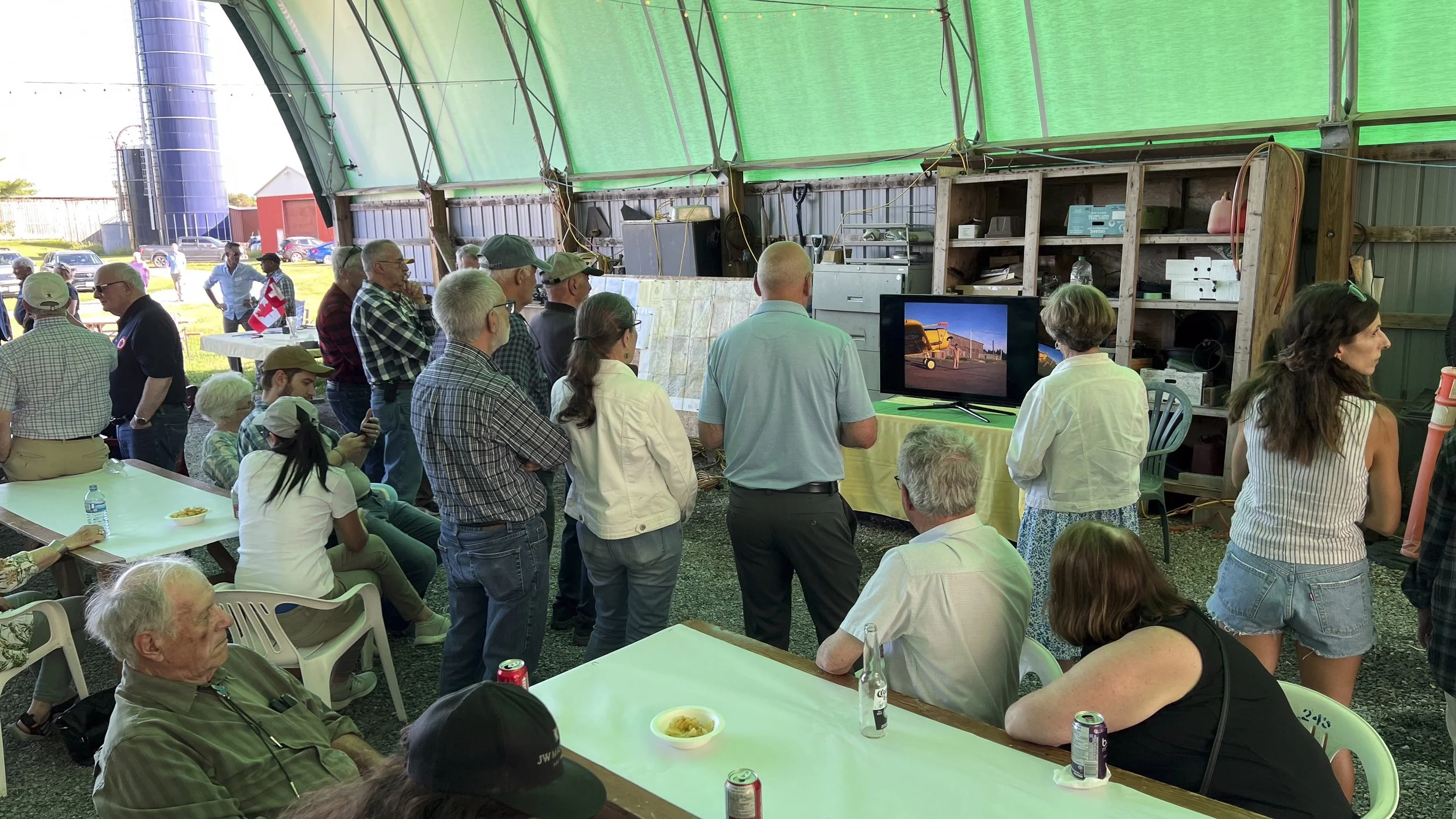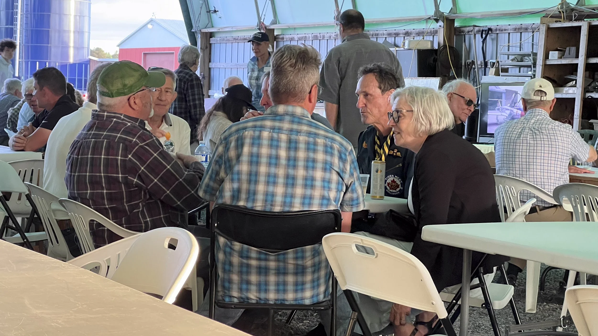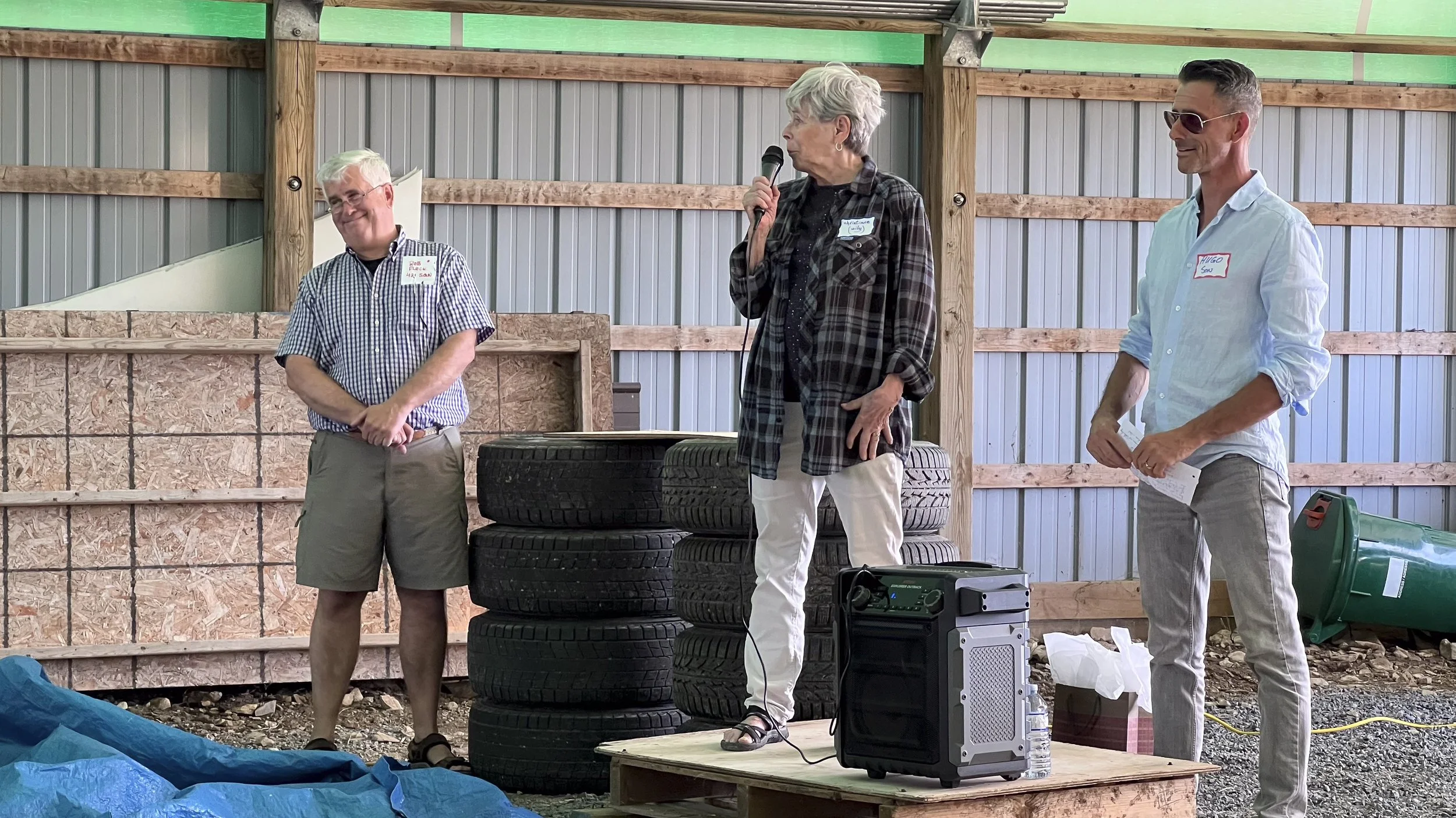 Todd Lemieux (Right) chats with Dr. Conrad Watters (flying colleague of Bollinger's) and his wife Nancy. Photo: Peter Handley