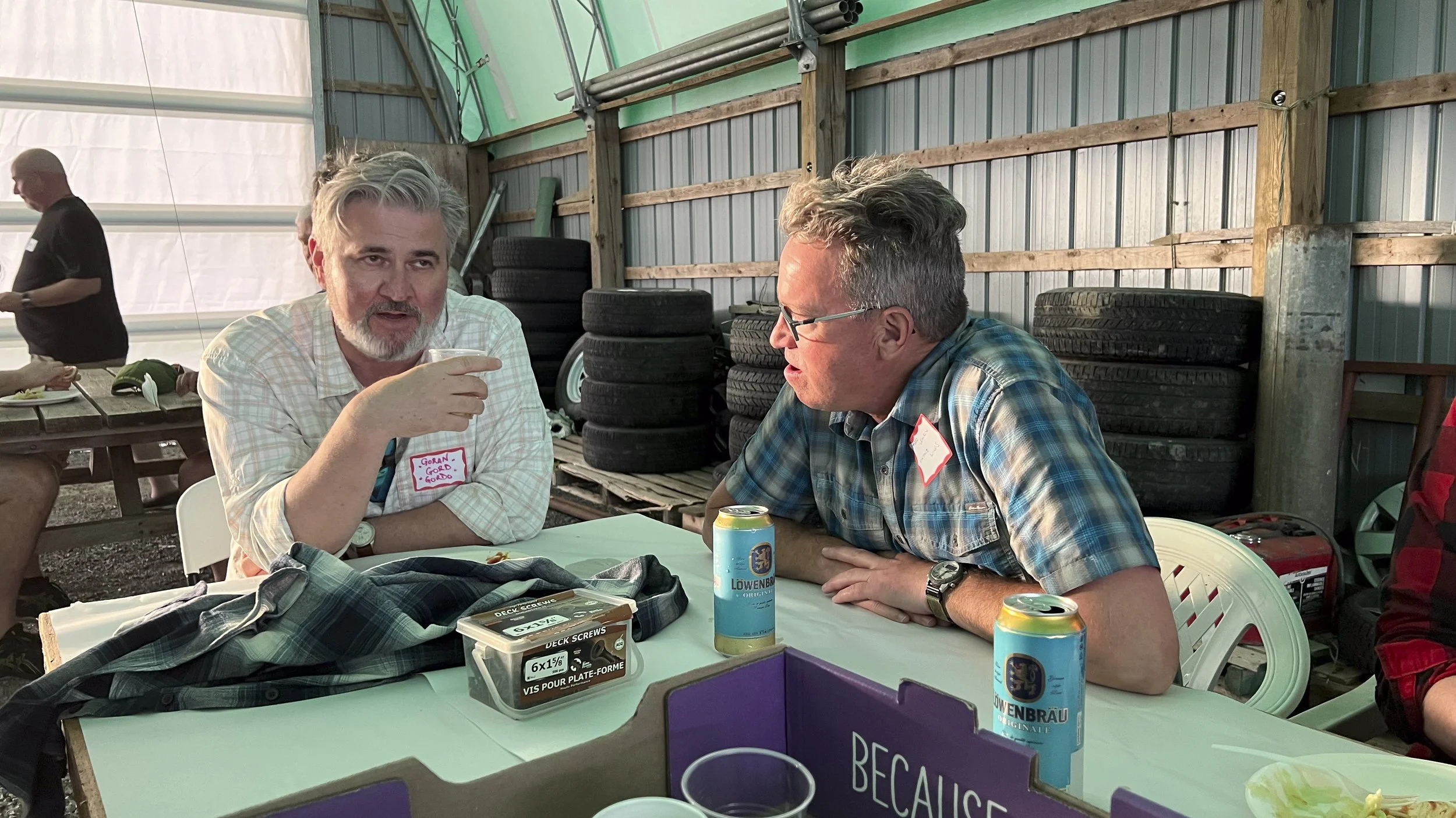 Goran “Gord” Jakovljevic (Air Canada Captain and Yellow Wings pilot) reminisces with Todd Lemieux. Photo: Peter Handley