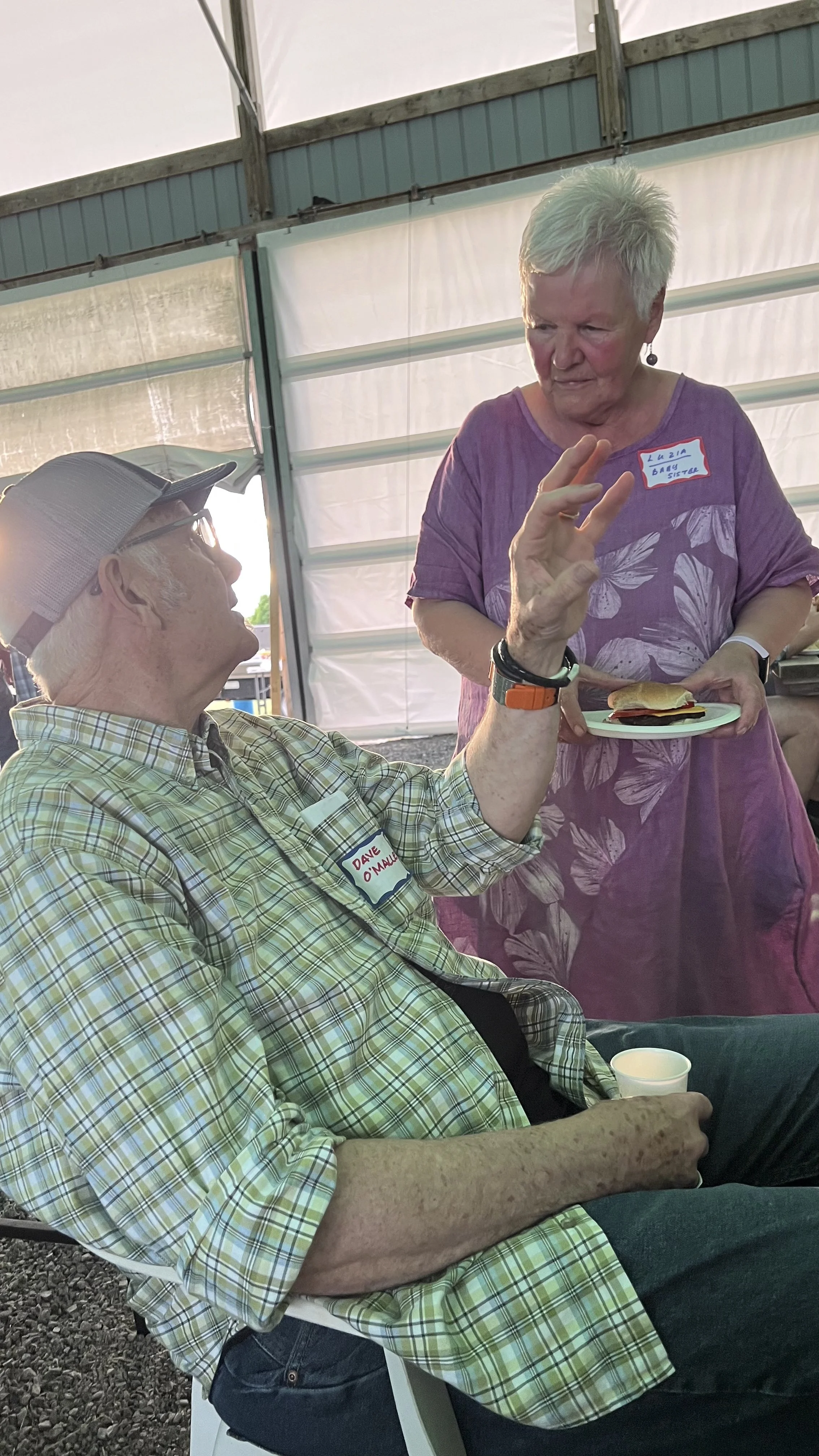 Dave O'Malley chats with Luzia, Ulrich's sister. Photo: Peter Handley