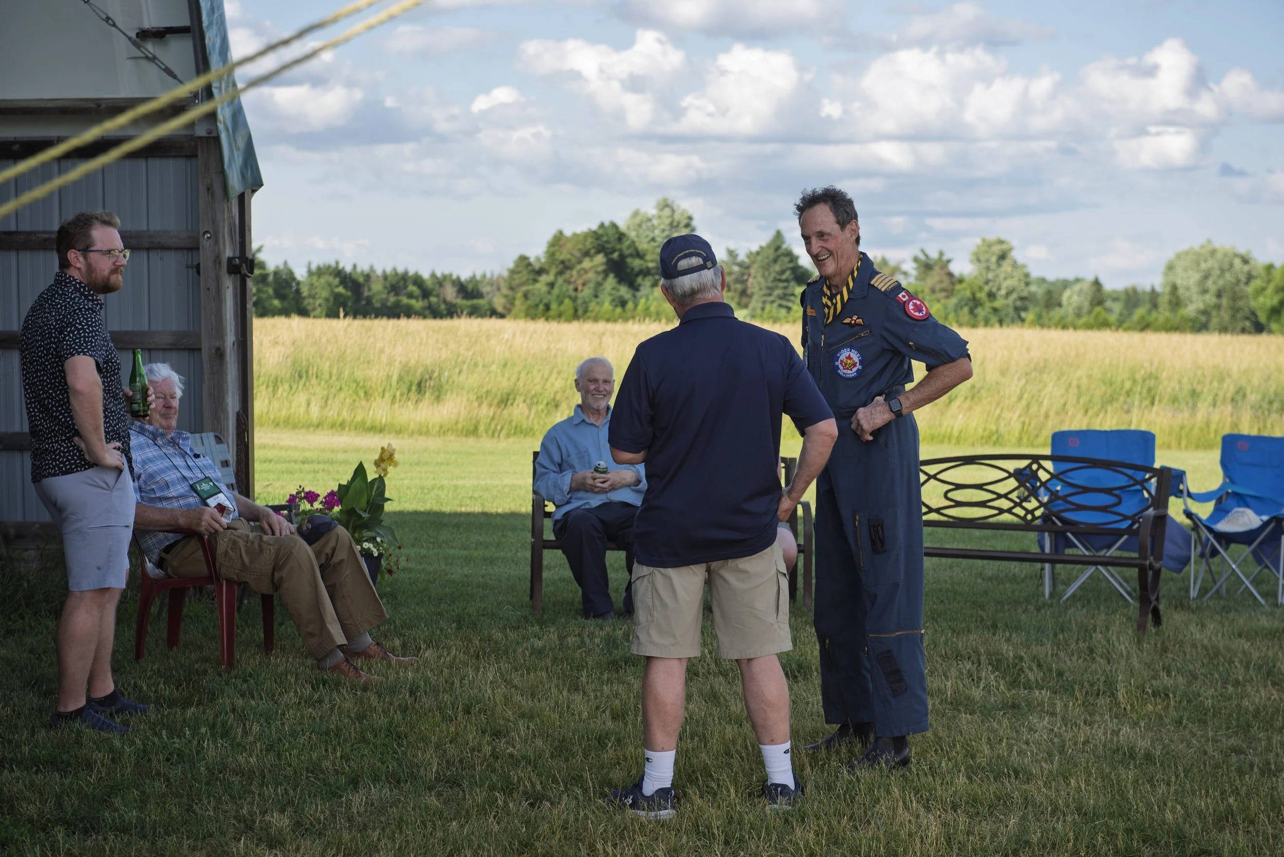 Dave O'Malley chats with Captain Gord Simmons and Captain Ron “Lurch” Dujohn, WestJet Captains and Yellow Wing pilots